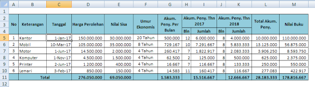 Penyusutan Aktiva Rumus Excel Untuk Menghitung Penyusutan Asset Dengan